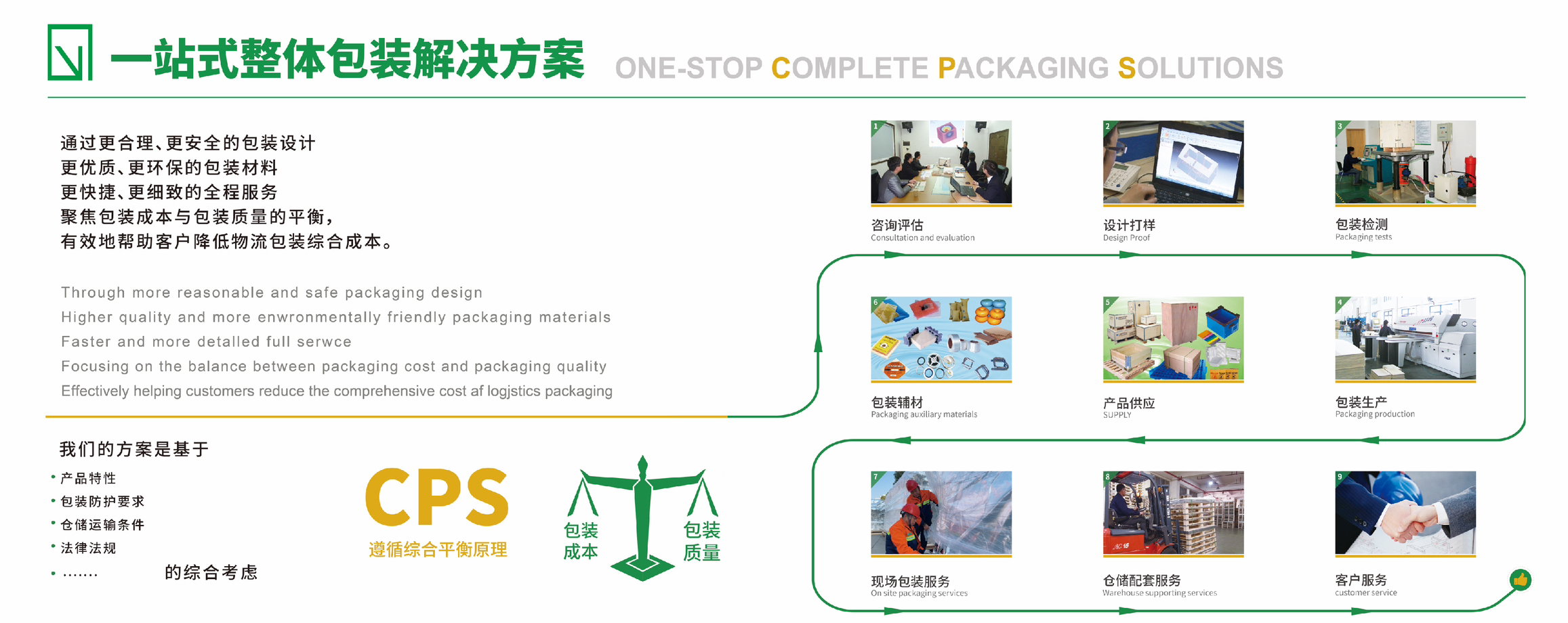 前程包裝始創(chuàng)于1984年,深耕工業(yè)包裝領(lǐng)域40年,致力于為客戶提供包裝咨詢評估、包裝設(shè)計與打樣、包裝檢測、包裝產(chǎn)品提供、倉儲物流現(xiàn)場包裝和包裝循環(huán)管理等“一站式”工業(yè)包裝整體解決方案(CPS)服務(wù)。
