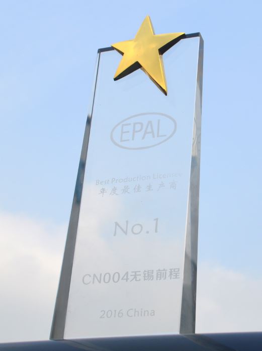 經(jīng)過歐洲托盤協(xié)會(huì)的審核評(píng)定,前程公司榮獲EPAL 2016年度生產(chǎn)商第一名。會(huì)上,EPAL CEO Martim為前程公司頒發(fā)了獎(jiǎng)杯。